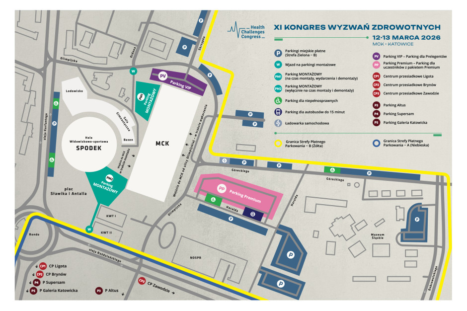 W przypadku braku dostępności miejscu a także dla uczestników o statusie Standard, istnieje możliwość skorzystania z parkingów miejskich wokół Międzynarodowego Centrum Kongresowego na terenie katowickiej Strefy Kultury lub poza nią. Płatność we własnym zakresie.